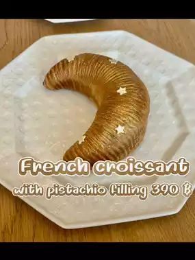 🧁🍮☕️🍮Let’s take a look at the menu we ordered. There were 2 of us, each ordering a drink and a piece of dessert. 🍰🧐. Ask the staff what kind of pastries they recommend. Go for it! 🥐 La Lane Classic French croissant with pistachio filling, priced at 390 baht. I tried it and it was okay. The texture of the classic French croissant with pistachio filling is not too sweet. It passes.