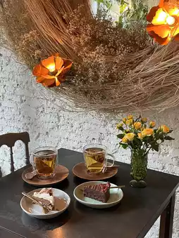 A lovely interior that's sure to look great in photos, and cute cakes decorated with flowers!