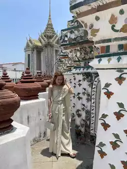 Wat Arun is beautiful when illuminated by the setting sun, so I recommend going in the evening. It is also the most beautiful place to take photos in costume.