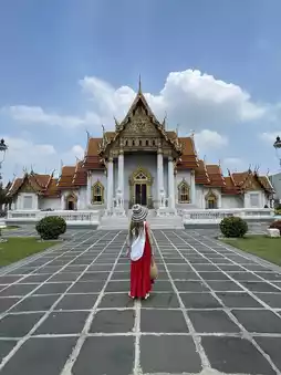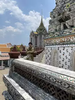 It's about a 10-minute walk from Wat Pho, and the old town on the way there is a mix of Western culture, which I felt was something you don't see in Japan♪Taxi travel is easy, but walking around gives you a real feel for the local atmosphere👍