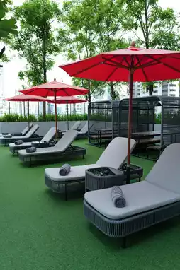 On the 8th floor, there's an outdoor swimming pool. The gym is very cool with plenty of equipment. What makes this hotel unique is its Japanese-style hot spring bath, which is quite rare in Bangkok.