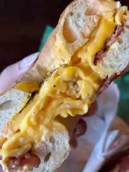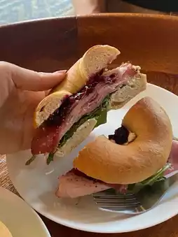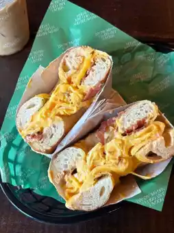 🫶🏻🥯 A famous bagel shop in the Sathorn area, the store is decorated in a retro black tone, creating a very cozy atmosphere. Outside, there's a Coffee Stand corner with a cool Japanese vibe. On our visit, we ordered the Salmon Cream Cheese Bagel, which was delicious with its chewy texture. We also added bacon, egg, and double cheese 🧀. Eating everything together was a burst of flavor!