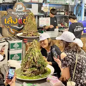 There are several night markets in Bangkok, and I think one of the must-sees is the brand new Jodd Fairs (จ๊อดแฟร์) Qiaode Night Market), the most famous of this night market is the volcano ribs 🌋, once inside has seen several restaurants available, and the portion is quite exaggerated 😳, know how to choose to choose the most large-scale and most people help เล้งแซ่บ, pay attention to the letters in the middle of two chili peppers 🌶️🌶️!