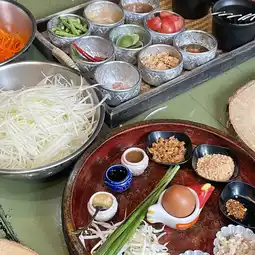 The class begins with a morning market tour. Together with the instructor, we explored ingredients and got to see and touch the spices and vegetables used in Thai cooking. There were many ingredients I had never seen before, and the instructor kindly explained each one, which made it very interesting.