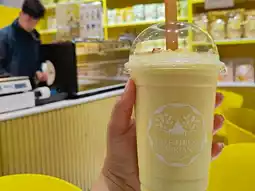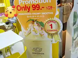 durianism cafe 🌟 Big C Ratchadamri branch, a cafe for durian lovers because here has everything durian-related, whether it's ready-to-eat durian, durian sticky rice, crispy fried durian. But don't forget to try the signature menu, Monthong durian smoothie and crispy durian cornflakes. Promotion price only 99 baht per glass.