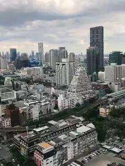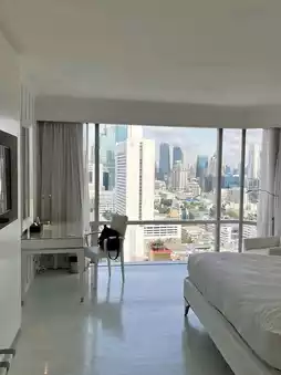Chic, minimalist design with floor-to-ceiling windows offering sweeping views of the Bangkok skyline.