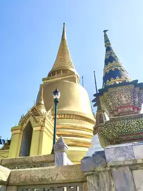 When visiting the royal palace, the giant demon guardian statues called "Yak (ยักษ์)" near the entrance immediately catch the eye. These statues are guardian deities from Thai and Cambodian mythology, tasked with protecting sacred places from evil spirits and negative energy. Standing guard at the palace gates, these Yak statues are vividly colored, majestic, and intricately decorated. As iconic symbols reflecting traditional Buddhist art and Khmer culture, they are a popular spot where many tourists stop to take photos.