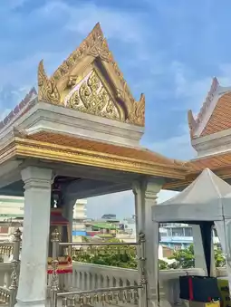 Besides its magnificent beauty, this beautiful temple in Bangkok also has a long history, making it a great place for learning. If anyone wants to visit and pay respects, you can take the MRT subway to Hua Lamphong Station, exit at number 1, and walk to the temple. It takes about 10 minutes, and along the way, you can also enjoy the beautiful views of Bangkok.