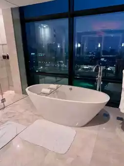Modern bathrooms with marble finish, rain showers, soaking tubs, andβ¦ their signature 24-hour butler service! πποΈ