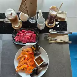💞Reasons to recommend: Delicious food with variety and good value for the price. Seafood on ice, large sweet shrimp, New Zealand mussels, Western food 🍕 pizza, Thai food like crab fried rice, jasmine rice, various Thai curries that change daily, including soups, tom yum, khao soi, stewed pork leg rice, pasta, chili paste, cheese selection, various salads, as well as baked goods, fresh fruit, ice cream, and pancakes.