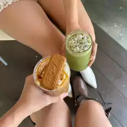 Ending today with desserts like🍋 lemon tart and a delicious matcha smoothie🍵, plus a delightful Biscoff latte☕️