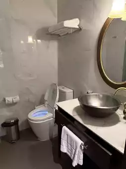 The room itself was really nice with an enormous, comfortable bed and lots of amenities. The shower had good pressure and the Japanese style toilet was a nice extra! Also the mini kitchenette was great, having a washing machine to clean sweaty clothes was amazing!