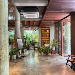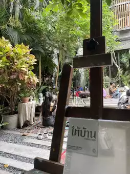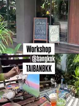 Highly recommend everyone to try Taiban Cafe, a cafe that feels just like home. Friends invited me to sit and draw, sip coffee, or enjoy homemade-style food. It’s truly a one-stop creative haven. Taiban Cafe (TAIBAN) is located in the Hua Lamphong area, near MRT Exit 3, very convenient to get to. The cafe is in a quiet alley but easy to find. The atmosphere is warm, like a friend’s home. The decor combines minimalism with loft style, offering both air-conditioned and cozy front garden seating. They also provide painting activities with colors, brushes, and canvases, perfect for chilling on a day off.