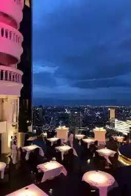 💜The hotel’s rooftop famous Sky Bar🍸 is on the 64th floor and is one of Bangkok’s most iconic sky bars. The movie "The Hangover Part II" was filmed here. It offers a 360-degree panoramic view overlooking the Chao Phraya River and Bangkok city. The iconic golden dome is its symbol, looking especially beautiful at night. You can eat or drink here (remember not to wear flip-flops).