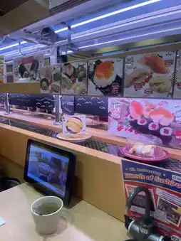 A famous conveyor belt sushi restaurant from Japan. Conveyor belt sushi is divided by plate color: