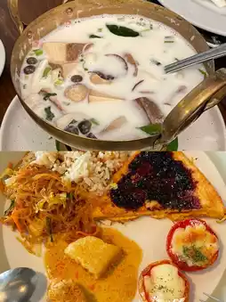 🍽 The outdoor dining area at the Theatre Restaurant offers views of the famous landmarks along the Chao Phraya River. The terrace is the perfect spot for enjoying sunset cocktails in the afternoon and before dinner, where you can witness the changing light on the river’s iconic landmarks. The ingredients are fresh, the menu diverse, offering authentic Thai cuisine as well as international dishes, and you can also watch live cooking demonstrations at the indoor cooking station.