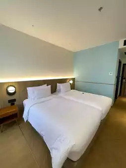 The hotel is renovated from an old building but completely redecorated. The beds, pillows, and duvets are very comfortable. Most importantly, it’s budget-friendly. We booked a twin room for two people on a Saturday night, costing about 6xx THB per person. For those on a tighter budget, there’s also a hostel option available. You can choose according to your preference 😆