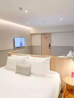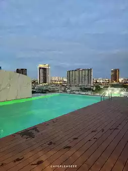 🧸 What I liked from the start was the lobby—beautiful, luxurious, and classy. The reception staff were super nice, very impressive. Then, going into the room, I liked it even more. It was wow-worthy! The room was very new and just the right size, giving a condo vibe. As a minimalist-style girl, I loved it the most. Then, upstairs, there’s a dining room. I have to say, the night view is absolutely stunning. I don’t know what else to say—it’s just so great. The swimming pool is nicely sized, not too big. And everyone who comes here will definitely get great photos to take home, I guarantee it!
