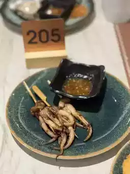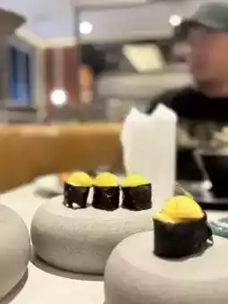 • Burnt salmon sushi, juicy fish that melts in your mouth