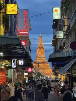 Known as the "Temple of Dawn," Wat Arun is even more beautiful when viewed across the Chao Phraya River at sunset. The temple itself is ornately decorated, and you can climb the stairs to enjoy the view 🌅🏛️