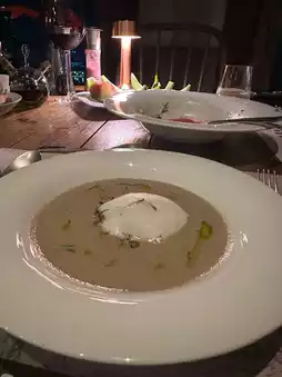 • Burrata salad, truffle mushroom soup, and Parma ham to start