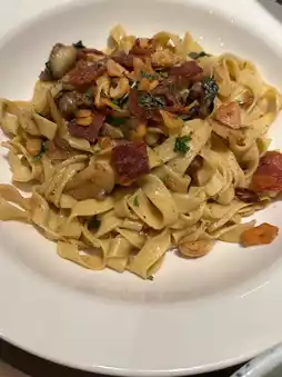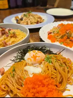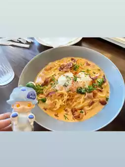 Today I had the chance to stop by PASTA AMA Pasta Ama. The restaurant stands out with both Outdoor and Indoor zones. As soon as you pass by, the mustard yellow storefront immediately catches your eye. The menu offers a wide variety of dishes with great taste. I came with a group of friends and we shared many dishes, especially the spaghetti. But this time, I highly recommend the restaurant’s salad, which I can say is just as delicious as the spaghetti. The branch I visited this time is the Ratchathewi branch. The restaurant has beautiful spots for taking photos and desserts like cakes, so you can get both savory and sweet all in one place.
