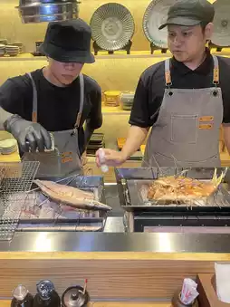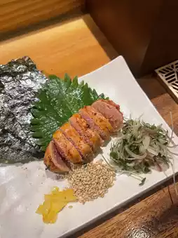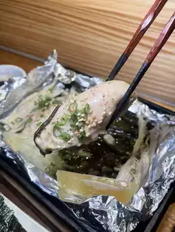 The oysters are very large, grilled to a fresh, bouncy texture, eaten with lemon. Mentaiko mushrooms are eaten with seaweed and roasted sesame seeds. The side dishes are excellent, perfectly balancing salty and sour flavors.