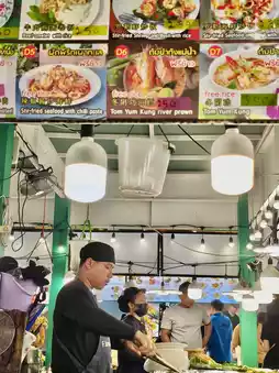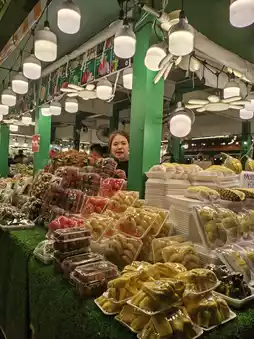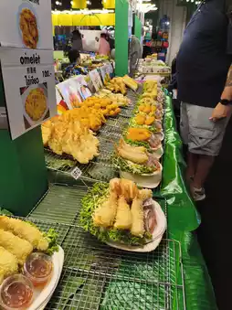 After shopping at Central World, we just wanted to take a walk, but as soon as we stepped out the door, we were greeted by a lively row of street food stalls, with flashing lights and irresistible aromas that completely drew us in. We decided to have dinner right there, enjoying Thai grilled skewers, shrimp cakes, Thai milk tea, and mango sticky rice. The prices were affordable and the food was incredibly satisfying.