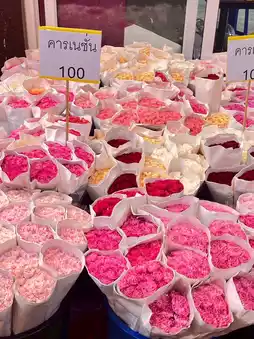 The largest fresh flower market in Bangkok, vibrant colors, fragrant scents, offering a variety of flowers including fresh flowers and decorative items. Perfect for a leisurely stroll, enjoying the atmosphere, and taking relaxed photos.