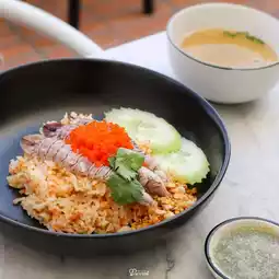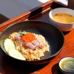 The restaurant is beautifully decorated with a cozy corner by the canal. Upstairs is a café with a view of the Chao Phraya River, giving the best vibe. Bring your camera strap, guaranteed plenty of great photo spots 📸👍