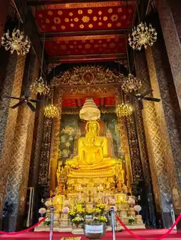 The temple features beautiful architecture, especially the ordination hall housing the "Phra Phuttha Chinnasi," a sacred Buddha image revered widely by Buddhists. The interior is exquisitely decorated, reflecting tranquility, elegance, and the early Rattanakosin era's atmosphere clearly.