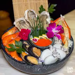 The menu is truly international, featuring a seafood zone, Japanese food, sashimi, sushi, Khao Soi, pizza, pasta, Indian food, Korean pork ribs, Thai dishes, and desserts including Thai sweets, bakery items, and ice cream. It's a great deal at 990 THB per person. Buy 4 pay for 3.