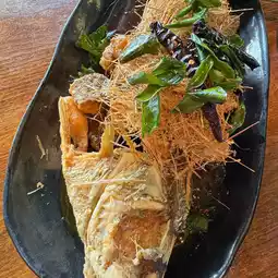 You must order the signature curry crab! The rich golden curry coats the plump crab meat, and the shell easily cracks open to reveal the juicy crab inside. Paired with fragrant rice, it’s a perfect match! The curry’s creamy milkiness has a slight spicy kick, making every bite incredibly fresh~🥢 The seasonal vegetables are a delightful surprise too! Crisp Chinese kale and tender water spinach stir-fried with Thai sauce, refreshing and cleansing~