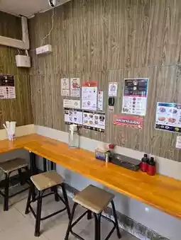 When I went, there were no customers yet, so no need to wait in line. But after a while, people started coming in. The seating inside is not very many, about 10 seats. If you come around lunchtime, you might have to take a chance. The staff is quick to serve. There is free drinking water and ice, as well as free pickled vegetables that help cut the richness very well.