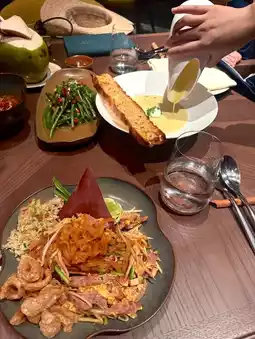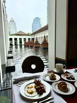 The corner floor-to-ceiling windows framed the Bangkok night view like a painting, and the bedding was so soft it felt like sinking into clouds~but the restaurant’s salty food made me question life 😢 The breakfast tom yum soup tasted like free salt, and the only two tasty items were the corn chowder and mango sticky rice! Check-in took 40 minutes; it’s recommended to communicate in advance by email~