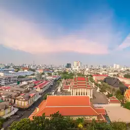 an ancient temple in the heart of Bangkok that offers tranquility and the stunning beauty of its golden chedi.