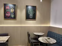 The interior is beautifully decorated with a spacious and airy atmosphere, comfortable seating, suitable for working or relaxing while shopping. There are power outlets and various seating options. The staff provide good, polite, and prompt service.