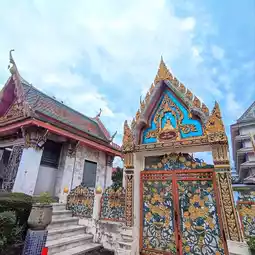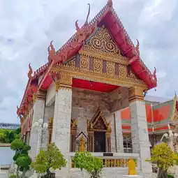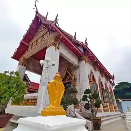 - The Thai-style ubosot (ordination hall) was constructed in 1927, over 80 years ago. It has since been restored to a more beautiful state. At the front of the ubosot, there are two entrance gates, with the temple’s principal Buddha image, called Phra Buddha Noppakhun Patimakon, enshrined between them. The front panel is intricately carved with traditional Thai patterns.