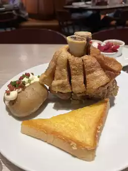 Eat Am Are is a popular steak-style restaurant known for its quality and great value. The menu is diverse, featuring pork steak, chicken steak, beef, fish, and pork chop steak, along with a variety of side dishes such as salad, mashed potatoes, French fries, or garlic fried rice. The flavors are rich, the steak meat is tender and not dry, and the gravy sauce is delicious and well-balanced.
