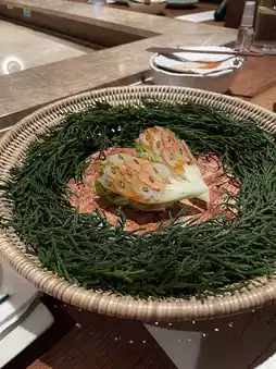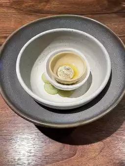 The appetizer Yaki Omgiri completely defies expectations 💥 Grilled rice balls paired with savory ham, combined with a fresh and sweet broth, create an unexpectedly harmonious clash! The most shocking and intriguing dish is the "Ant's Larvae" sprinkled with macadamia nut crumbs, giving a crispy and tangy texture that completely masks the presence of ants 🐜 Brave souls must give it a try!
