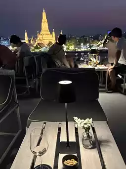 - This rooftop located on the banks of the Chao Phraya River is unlike other bars, with no fences blocking the view, offering an unobstructed and most beautiful photo opportunity of Wat Arun from all directions.
