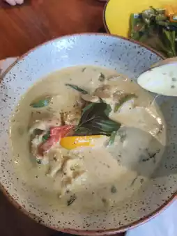 We ordered Pad Krapow Moo (stir-fried spicy minced pork with basil) with rice, green curry chicken, pad thai, and Thai milk tea. The Pad Krapow Moo is especially highly recommended, with its rich meaty and spicy flavor. The atmosphere inside is simple and comfortable. No need to queue or spend a lot, yet you can enjoy authentic Thai cuisine—this is the best kind of surprise during your trip!