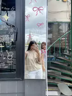 • The main view is from the large glass on the 2nd floor overlooking Wat Arun. Enjoying ice cream while soaking in the sunset feels amazing