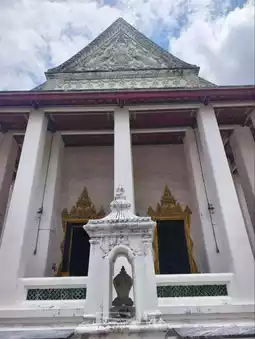 "Wat Thepthidaram Worawihan" is a third-class royal temple originally named Wat Ban Phraya Krai Suan Luang. The important feature of this temple is the four-direction prangs, crafted by artisans during the reign of King Rama III. The pavilion supporting the principal Buddha image is the first thing to pay respect to. The principal Buddha image inside the ubosot is Phra Phuttha Thewawilas, commonly called Luang Pho Khao by locals. It is a Buddha image in the Mara Vichai posture, carved from pure white stone and enshrined in a Vejayanthabutsabok. The walls of the ubosot have paintings of the Phum Khao Bin pattern, a style from the reign of King Rama III, built in 1836. The temple features a blend of Thai-Chinese architecture. When visiting Wat Thepthidaram, another must-visit spot is the shrine of the 52 Bhikkhuni nuns, where you can pray for career success. Anyone who wants smooth work relations with women should come and pay respect here!!!