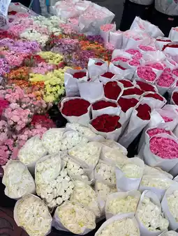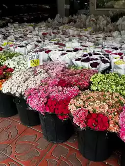 If you want to experience the charm of Bangkok at night, Pak Khlong Talat is a must-visit! This place is a hub for fresh flowers, Thai flowers, imported flowers, all at lovely prices. You can enjoy walking here all night long. The shops line up endlessly, with beautiful colors perfect for taking stunning photos.