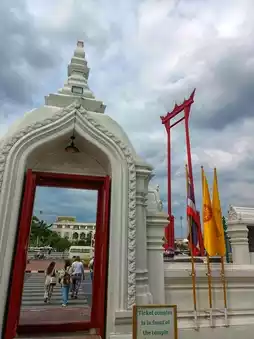 The Giant Swing is a tourist attraction in Bangkok, known for its distinctive and eye-catching appearance. It stands 10 meters tall and is painted red, making it visible from afar. The beautiful architecture was originally built for the swing ceremony.