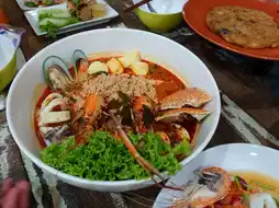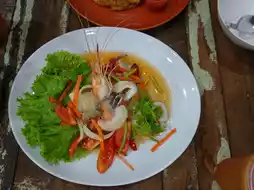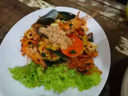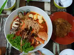 The seafood was fresh and generous, which really elevated the dish. We also ordered a few side dishes to share, and while they were good, the tom yum still stole the spotlight. The shop itself was small and humble, not the kind you’d expect such a culinary punch from—except for the huge lobster statue standing guard at the entrance, giving away a hint of what’s to come.