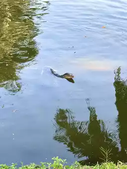 📍 The 2-meter-long monitor lizards living in the pond are a park specialty. If you're lucky, you can observe them swimming gracefully on the water’s surface.