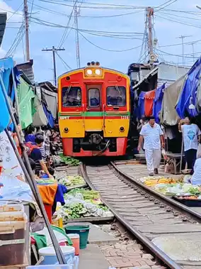 ▪️Maeklong Railway Market (watching the train pass right by the stalls!)