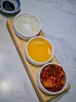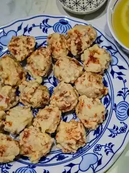 Personally, I like the Tangsuyuk: Korean Chinese-style sweet and sour pork. The pork is fried crispy on the outside and tender inside. The sauce is served separately, keeping the pork crispy, and the sauce has a slight lemon aroma. Some people like to pour it over, but I prefer to dip the pork myself. I also ask the staff to season the sauce, which makes it salty and delicious, perfect for dipping with fried chicken.